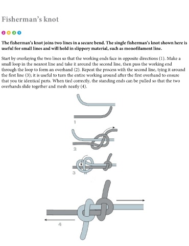 The fisherman’s knot joins two lines in a secure bend. The single fisherman’s knot shown here is