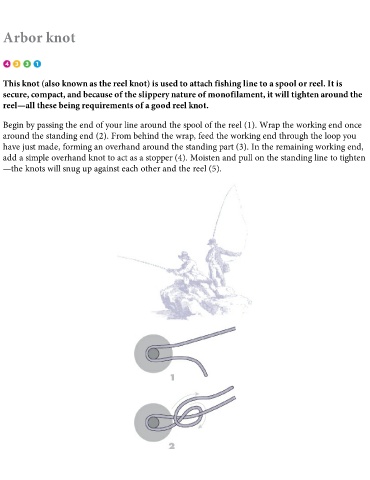 This knot (also known as the reel knot) is used to attach fishing line to a spool or reel. It is