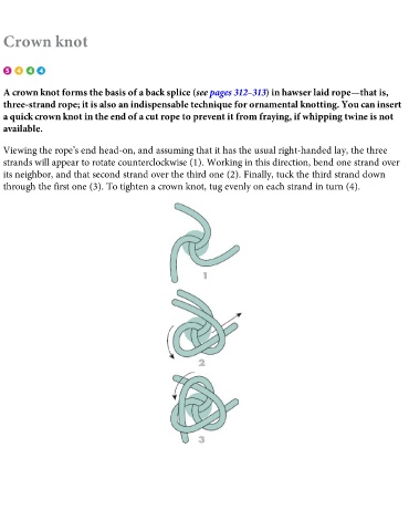 A crown knot forms the basis of a back splice (see pages 312–313) in hawser laid rope—that is,