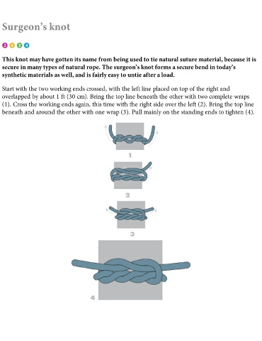 secure in many types of natural rope. The surgeon’s knot forms a secure bend in today’s