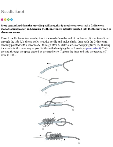 the needle in the same way as you did the nail when tying the nail knot (see pages 48–49). Tuck