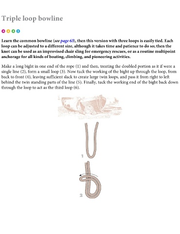 Learn the common bowline (see page 63), then this version with three loops is easily tied. Each