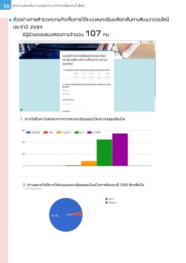 50 สถาบันส่งเสริมการสอนวิทยาศาสตร์และเทคโนโลยี ตัวอย่างการสำ รวจความคิดเห็นการใช้ระบบลงทะเบียนเลือกเส้นทางสัมมนาออนไลน์ ประจำ ปี 2559 มีผู้ร่วมตอบแบบสอบถามจำ นวน 107 คน