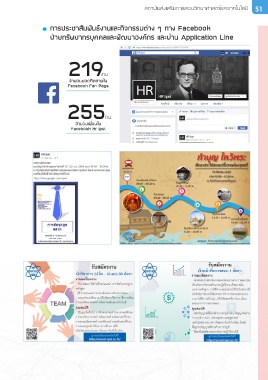 สถาบันส่งเสริมการสอนวิทยาศาสตร์และเทคโนโลยี 51 การประชาสัมพันธ์งานและกิจกรรมต่าง ๆ ทาง Facebook ฝ่ายทรัพยากรบุคคลและพัฒนาองค์กร และผ่าน Application Line 219 คน จำ นวนยอดติดตามใน Facebook Fan Page 255 คน จำ นวนเพื่อนใน Facebook Hr Ipst