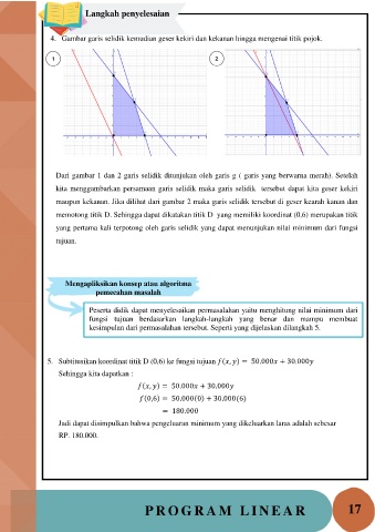 5. Subtitusikan koordinat titik D (0,6) ke fungsi tujuan ( , ) = 50.000 + 30.000