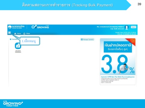 ติดตามสบานะการท ารายการ (Tracking-Bulk Payment) 39 1.เลือกเมนู