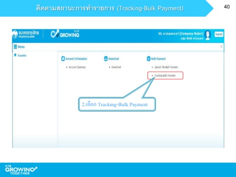 ติดตามสบานะการท ารายการ (Tracking-Bulk Payment) 40 2.เลือก Tracking-Bulk Payment