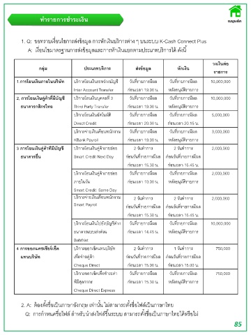 1. Q: ขอทรำบเงื่อนไขกำรส่งข้อมูล กำรหักเงินบริกำรต่ำง ๆ บนระบบ K-Cash Connect Plus