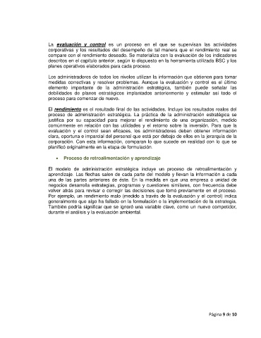 El modelo de administración estratégica incluye un proceso de retroalimentación y