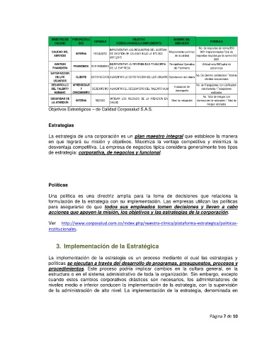 Objetivos Estratégicos – de Calidad Corposalud S.A.S.
