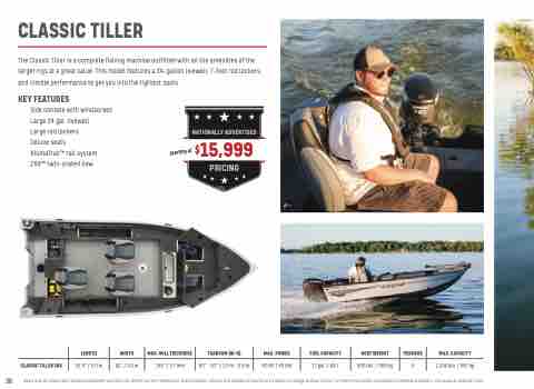 The Classic Tiller is a complete fishing machine outfitted with all the amenities of the larger rigs at a great value. This model features a 34-gallon livewell, 7-foot rod lockers, and nimble performance to get you into the tightest spots.