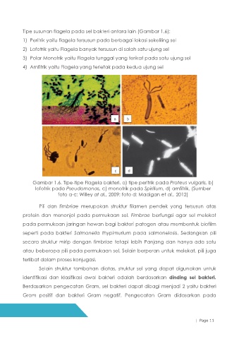 Tipe susunan flagela pada sel bakteri antara lain (Gambar 1.6):