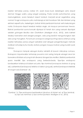 Gambar 1.4. Tipe endospora berdasarkan lokasinya di dalam sel. a) Tipe terminal,