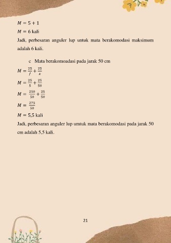 Jadi, perbesaran anguler lup untuk mata berakomodasi maksimum