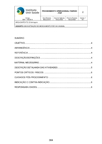 ASSUNTO ADMINISTRAÇÃO DE MEDICAMENTO POR VIA VAGINAL