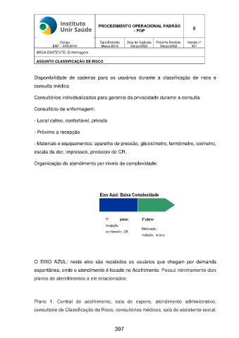 Disponibilidade de cadeiras para os usuários durante a classificação de risco e