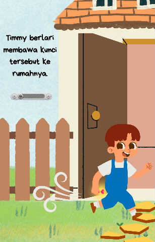 y a m r l b e r Timmy berlari i T m i m e m b a w a k u n c i membawa kunci tersebut ke t e r s e b u t k e r u m a h n y a . rumahnya.