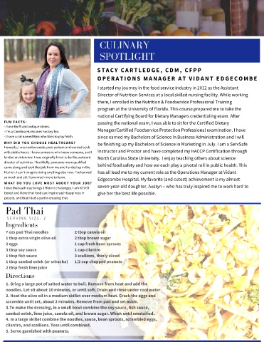 kitchen. I can’t imagine doing anything else now. I’ve learned has all lead me to my current role as the Operations Manager at Vidant