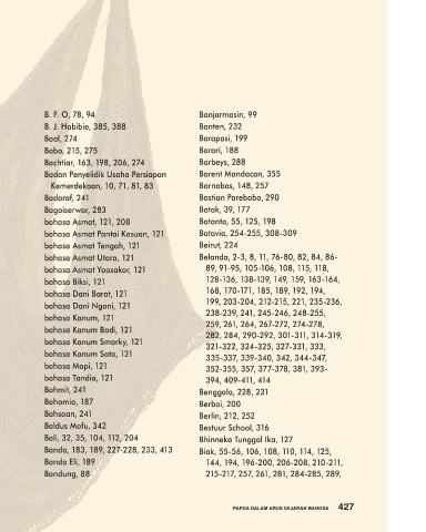 Aradide, 159 Ati-Ati, 185-187 bahasa Asmat Pantai Kasuan, 121 Batavia, 254-255, 308-309