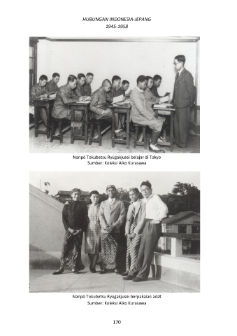HUBUNGAN INDONESIA-JEPANG 1945-1958 Nanpō Tokubetsu Ryūgakjusei belajar di Tokyo Sumber: Koleksi Aiko Kurasawa Nanpō Tokubetsu Ryūgakjusei berpakaian adat Sumber: Koleksi Aiko Kurasawa 170
