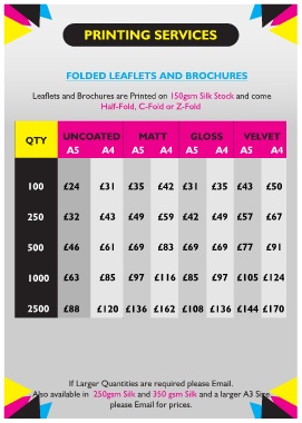 Leaets and Brochures are Printed on 150gsm Silk Stock and come