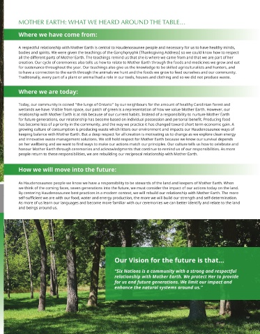 bodies and spirits. We were given the teachings of the Ganǫhǫnyǫhk (Thanksgiving Address) so we could know how to respect