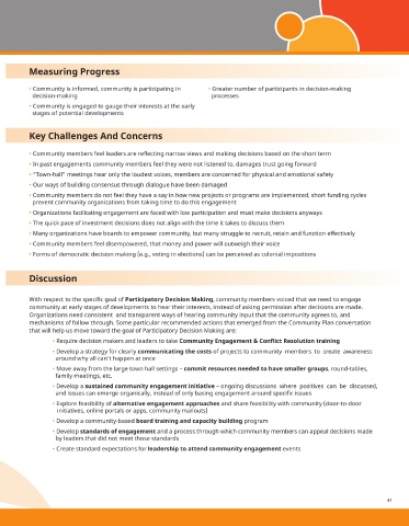 With respect to the specific goal of Participatory Decision Making, community members voiced that we need to engage
