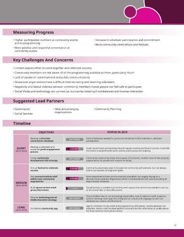 • Higher participation numbers at community events • Increase in volunteer participation and commitment