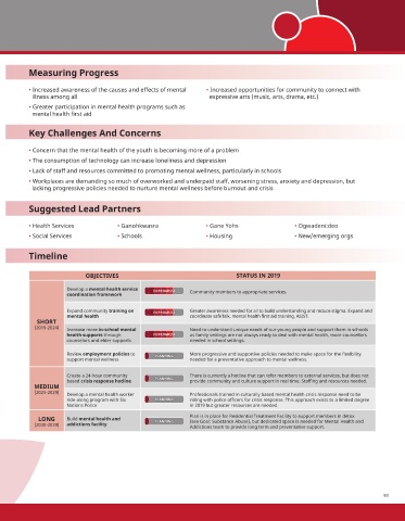 • Increased awareness of the causes and effects of mental • Increased opportunities for community to connect with