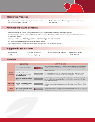 MEDIUM Integrate a community exercise Explore feasibility of a community exercise facility and indoor walking track to provide