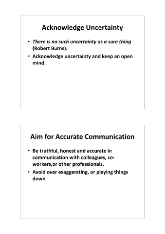 • Acknowledge uncertainty and keep an open