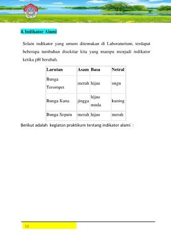 Berikut adalah kegiatan praktikum tentang indikator alami :
