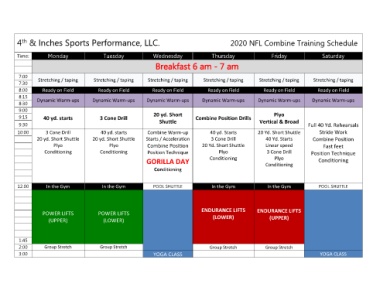 4 & Inches Sports Performance, LLC. 2020 NFL Combine Training Schedule