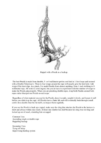 If you use the Prusik to back up a rappel, make sure the sling that attaches the Prusik to the harness is