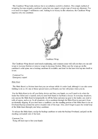calls of nature, and so on. In all situations, clip a carabiner through the Mule Knot to prevent it from