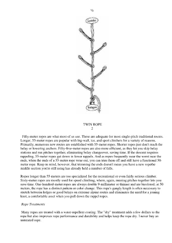 save time. One-hundred-meter ropes are always double 9-millimeter or thinner and are bicolored; at 50