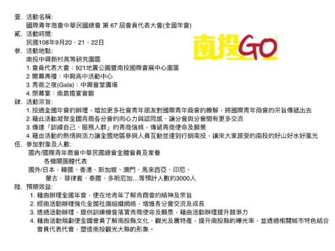 會員代表代會,塑造南投觀光⼤ 縣的形象。