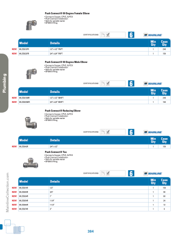 • Connects Copper, CPVC, & PEX • Push Connect Installation