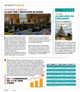 Cameroun a logé dans ce top 500, 12 entreprises (l’une d’elle, que nous n’affichons pas C’est le plus grand navire-hô- chirurgicaux à près de 6000 patients camerounais camerounaises existent », citant notamment l’organi-