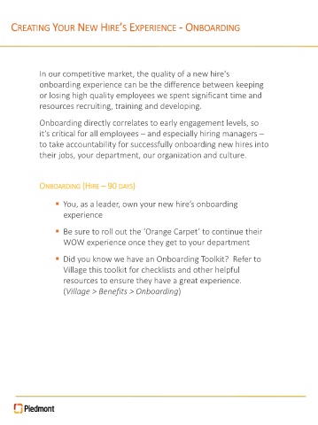 CREATING YOUR NEW HIRE’S EXPERIENCE - ONBOARDING