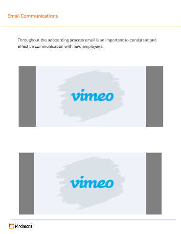 Email Communications Throughout the onboarding process email is an important to consistant and effective communication with new employees.