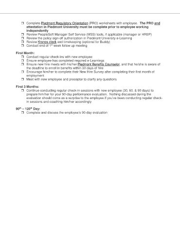 Complete Piedmont Regulatory Orientation (PRO) worksheets with employee. The PRO and