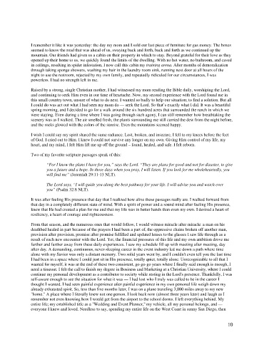 knew that He had created a plan for me and that my life was in better hands than even my own. I desired a heart of