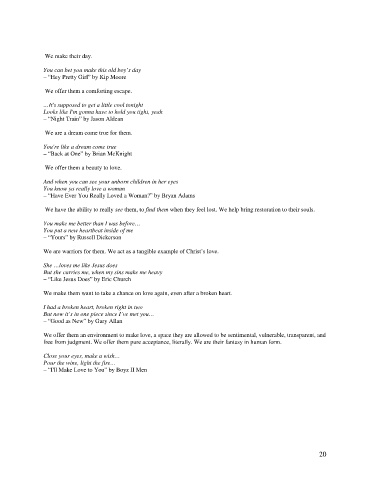 We have the ability to really see them, to find them when they feel lost. We help bring restoration to their souls.
