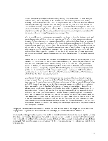into that same path of brokenness. She has already been so wounded. But I have faith in you. I