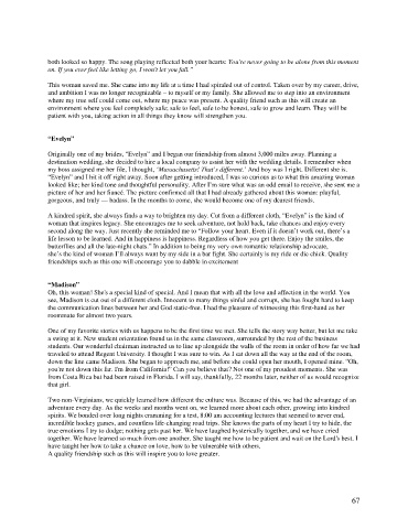 together. We have learned so much from one another. She taught me how to be patient and wait on the Lord's best. I