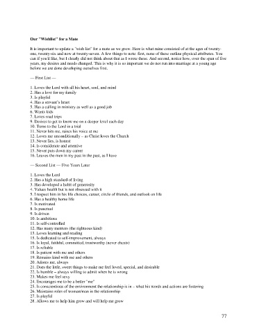 It is important to update a "wish list" for a mate as we grow. Here is what mine consisted of at the ages of twenty-