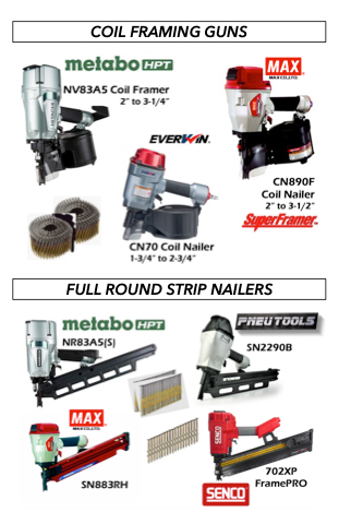 COIL FRAMING GUNS FULL ROUND STRIP NAILERS