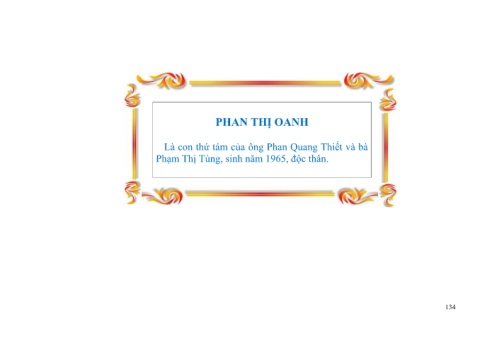 PHAN THỊ OANH Là con thứ tám của ông Phan Quang Thiết và bà Phạm Thị Tùng, sinh năm 1965, độc thân. 134