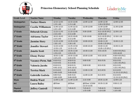 1 Grade Adrianna Taylor 10:15-10:45 10:15-10:45 9:30-10:00 9:15-10:35 (PLC) 12:30-1:10